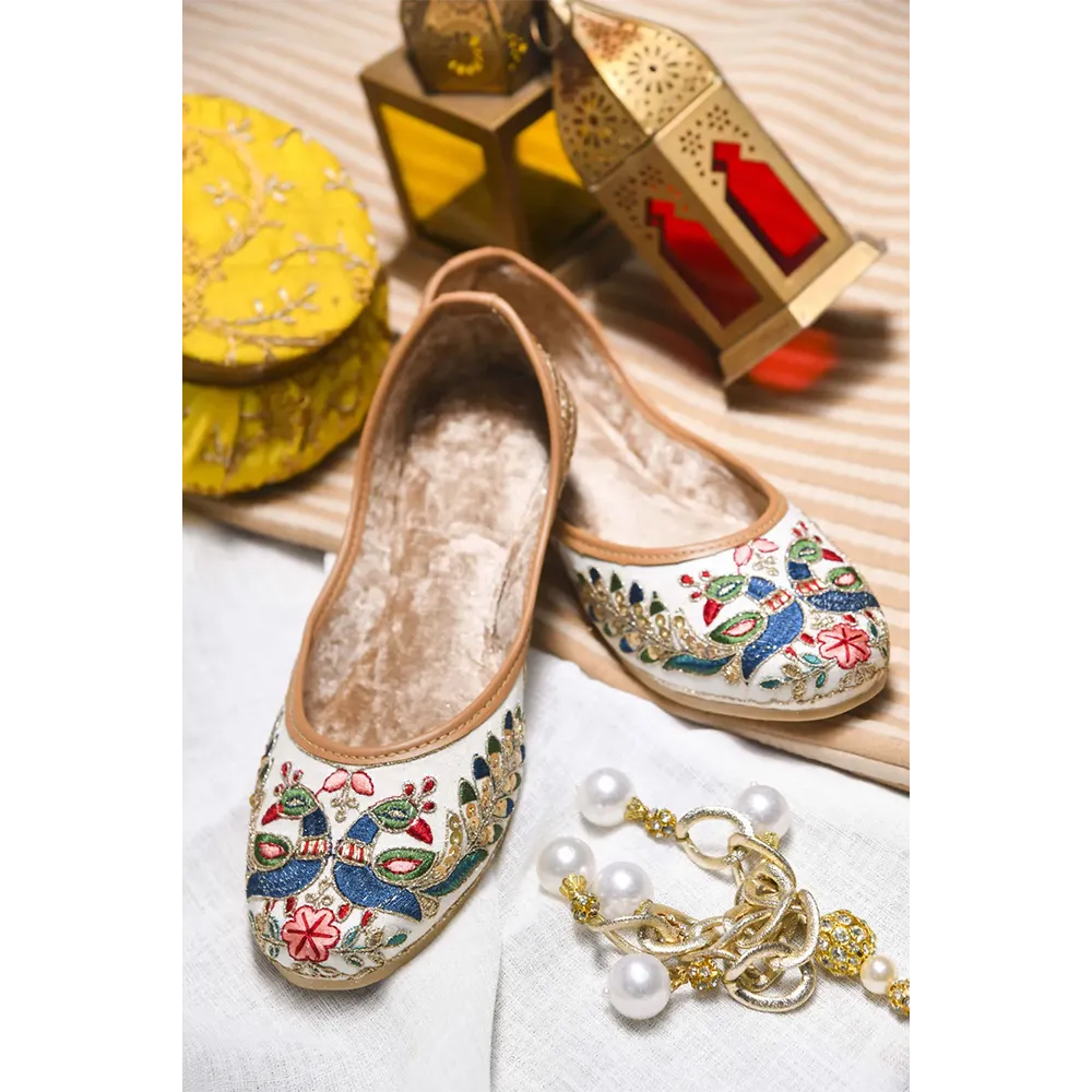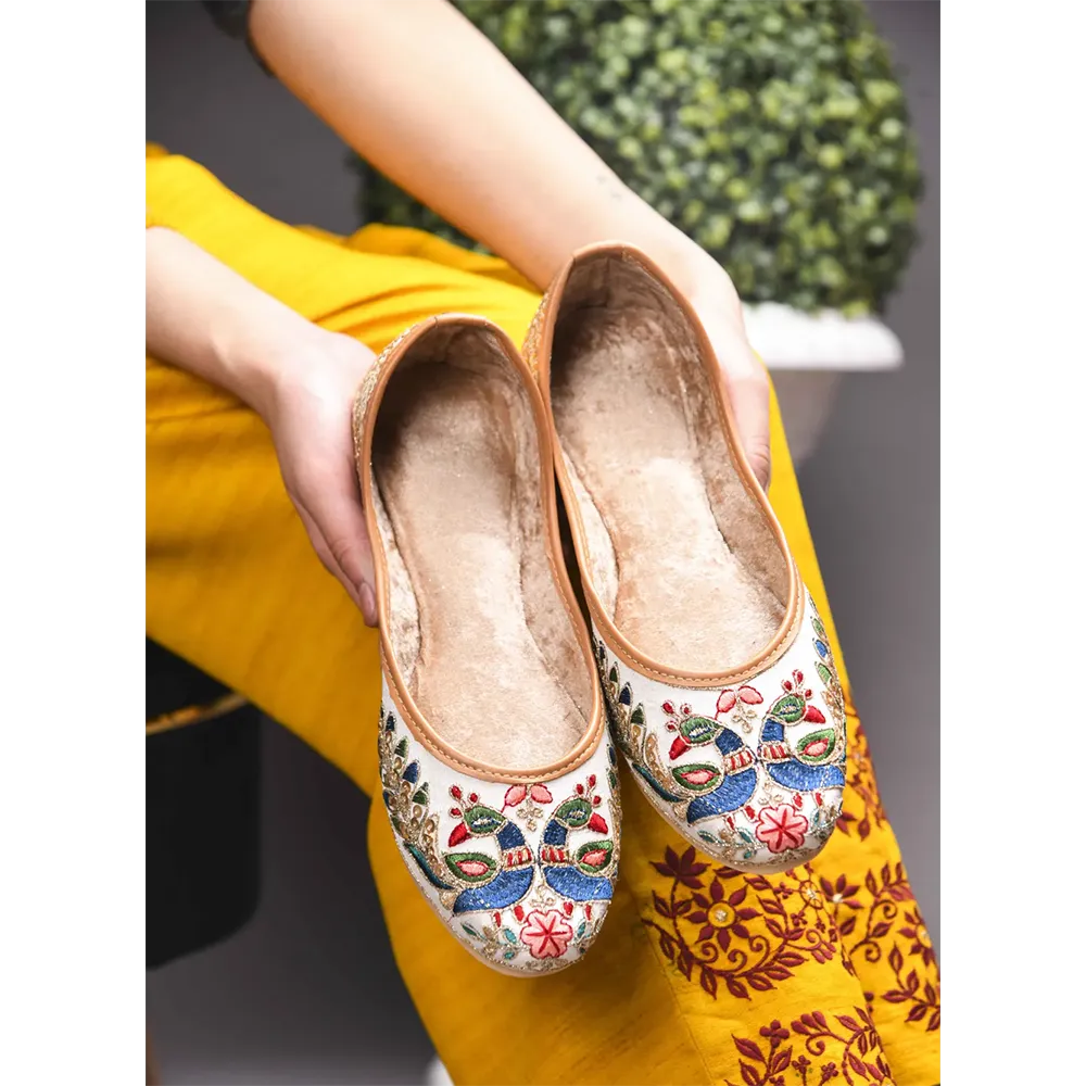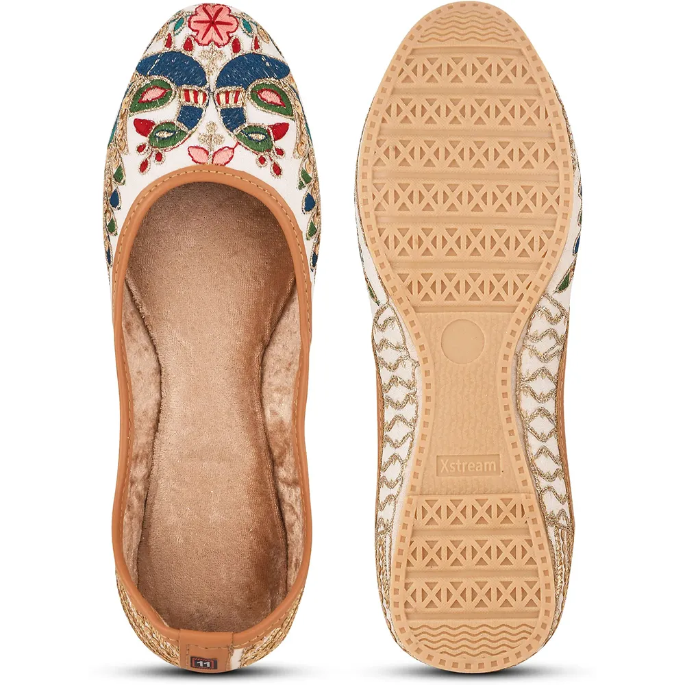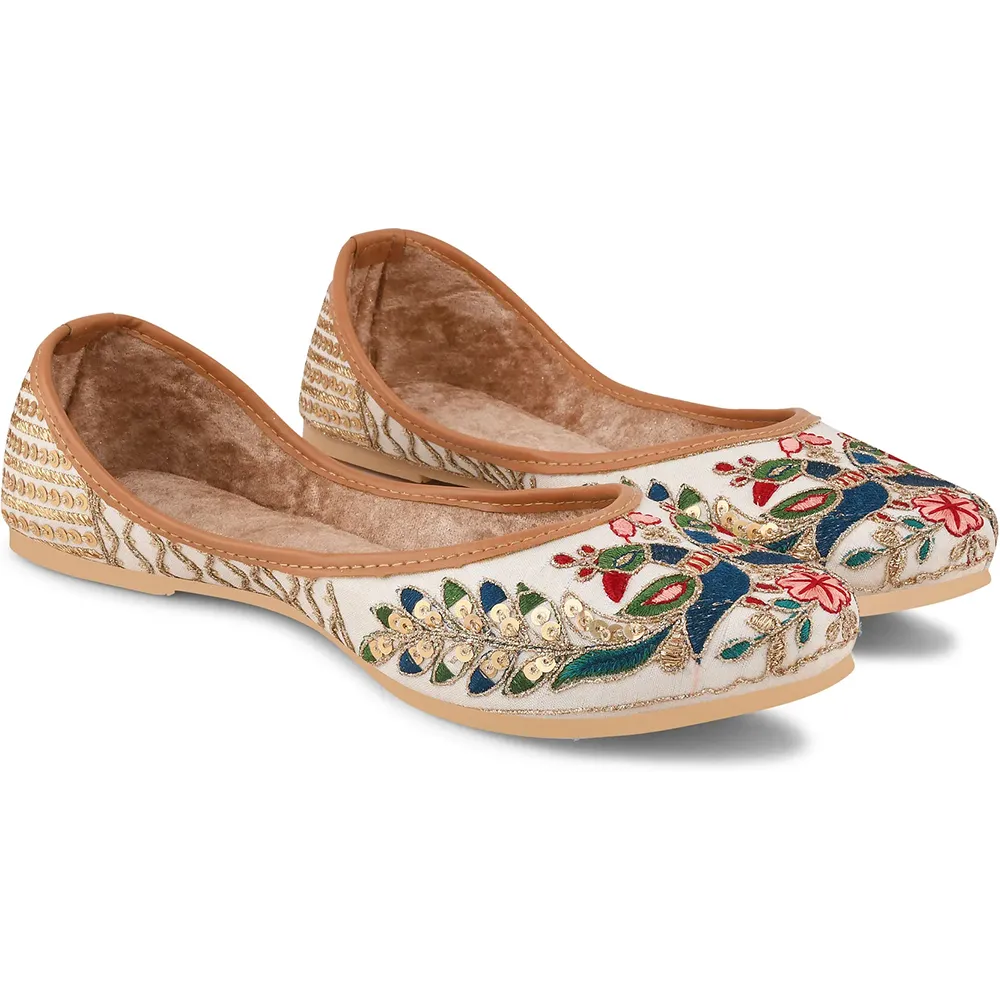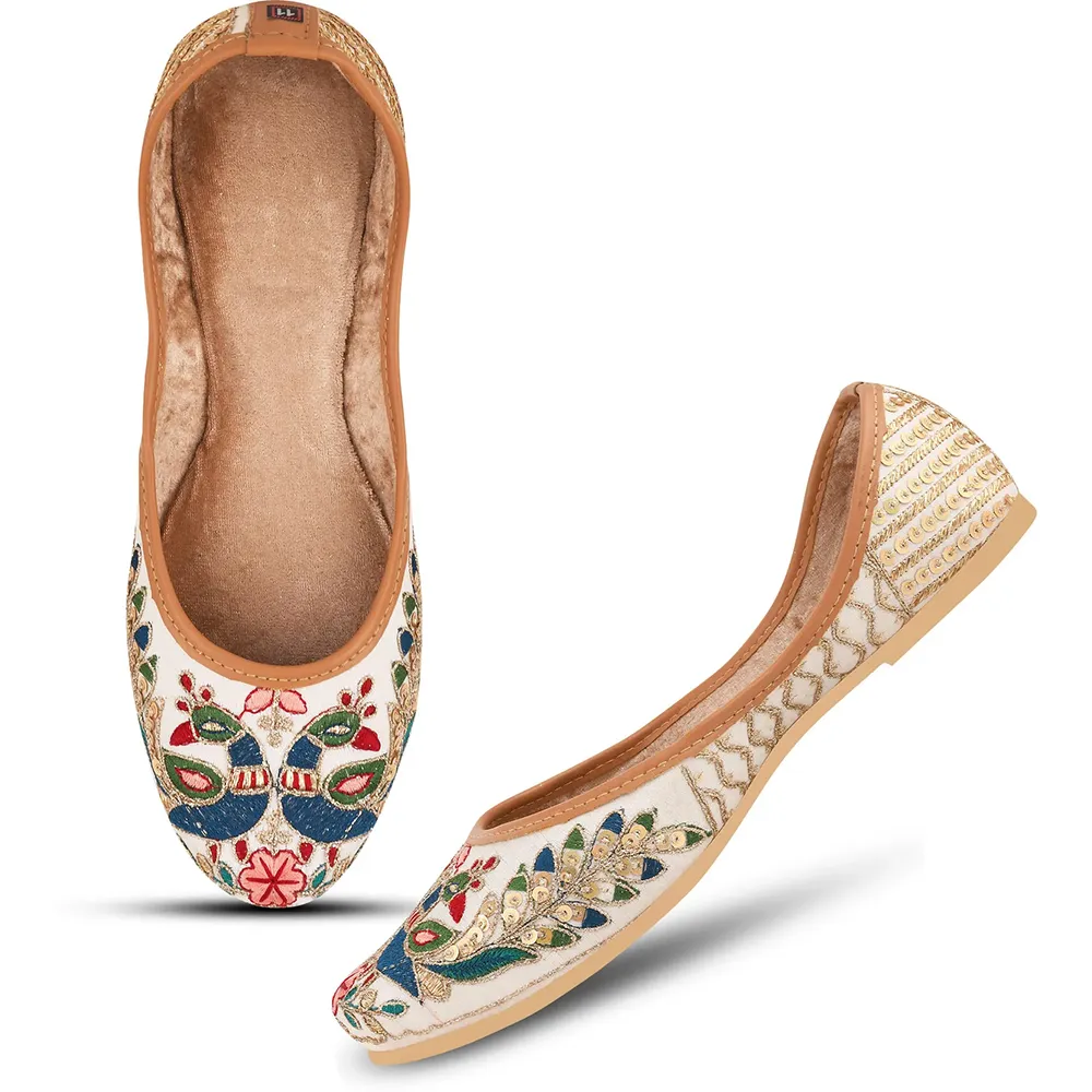 Elevate your ethnic look with these off white jutis from Theme United, crafted from high-quality artificial leather and designed for women seeking style and comfort.